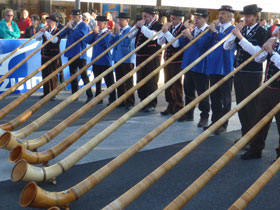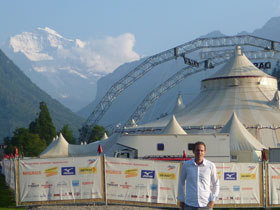 20 Jahre später, sind was das Wetter betrifft, keine Störungen zu erwarten. Ausschließlich blau präsentiert sich der Himmel im Berner Oberland mit noch sommerlichen Temperaturen. Interlaken und der komplette Veranstaltungsbereich an der Höhematte haben sich prächtig herausgeputzt. Die Aufbauarbeiten der riesigen Event-Arena samt dem markanten Kuppeldach des Schweizer Tourneetheaters „DAS ZELT“ haben mehrere Tage in Anspruch genommen. Samstag und Sonntag werden DJ Ötzi und weitere Gäste hier die Stimmung noch weiter anheizen.
