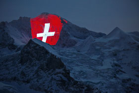 Nicht nur der Jungfrau Marathon hat Grund zu feiern, auch die Jungfraubahn, sie feiert heuer ihr 100-Jahr Jubiläum. Im Februar 1912 hatten italienische Minenarbeiter mit einer gewaltigen Ladung Dynamit nach fast 16 Jahren Bauzeit den Durchschlag auf dem Jungfraujoch geschafft. Sie vollendeten den Bau des Eisenbahntunnels, der durch Eiger und Mönch zur höchsten Bahnstation Europas führt. Begonnen hat man mit den Feierlichkeiten bereits im Januar. Der Lichtkünstler Gerry Hofstetter projizierte an mehreren Tagen im Januar und Februar die Schweizer Nationalflagge auf die vereiste Nordflanke unterhalb des Jungfraugipfels. Teilweise bis in den Schwarzwald konnte das Schweizer Kreuz gesehen werden.