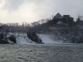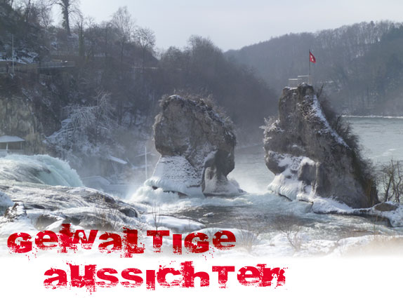 Ein 10-minütiger Fußmarsch führt uns hinunter ans Rheinufer, wo sich wahrscheinlich sonst Herrscharen von Touristen tummeln um den herrlichem Blick auf das Objekt der Begierde einzufangen. Heute Morgen ist es aber noch ruhig, kein Wunder bei Temperaturen im unteren zweistelligen Minusbereich. Dazu lässt sich die Sonne auch noch betteln und ist nicht präsent. Aber Daniel verspricht: sie wird kommen.