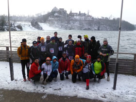 Organisiert wird der Rheinfall Marathon heuer zum zweiten Mal und zwar als Einladungslauf von Daniel Steiner, meinem Reporterkollegen von marathon4you. Teilnehmen können derzeit nur Freunde von Daniel mit einer persönlichen Einladung. Bei der Erstauflage waren 18 Personen beteiligt, heuer sind schon 28 angemeldet, einer fällt wegen Krankheit aus und Niels verpennt den Start. So bleiben 26 Laufwillige übrig.