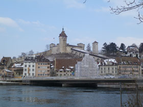 Gegenüberliegend ist das Stadtpanorama von Schaffhausen bewundern. Daniel engagiert sich als Fremdenführer und zeigt mir die alten Stadttürme und erzählt was sonst noch wissenswert ist. Wie z.B. von der Bombardierung Schaffhausens im Zweiten Weltkrieg. Am 1. April 1944 wurde die Stadt versehentlich das Ziel von Bombenangriffen mehrerer Geschwader der US-Air Force, sie hatten eigentlich Ziele in Deutschland auf dem Plan. Die US-Streitkräfte entschuldigten die Bombenabwürfe später mit Navigationsfehlern. Einen der Bomberpiloten hat er später persönlich kennen gelernt und... das erzähle ich jetzt nicht weiter. Ihr könnt ihn ja persönlich nächstes Jahr danach fragen.