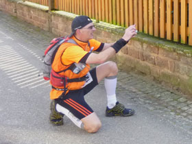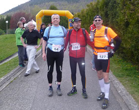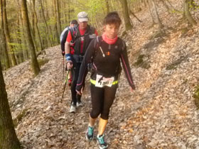 Kurz vor Lembach sind 3 Stunden um, eingeprägt habe ich mir eine Cut-off-Zeit von 3:25h. Das müsste gerade noch reichen, um im Limit zu bleiben. Doch am Ortsanfang werden wir wieder hoch und in einen großen Bogen um die Ortschaft geführt. Die Zeit verrinnt und ich mache mir langsam Sorgen, aus dem Rennen genommen zu werden wenn nicht bald die Verpflegungsstelle kommt. Für meinen Geschmack muss ich das Tempo auf dieser langen Distanz ungewohnt verschärfen. Bisher hatte ich in meinem Läuferleben noch nie mit Sollzeiten zu kämpfen. Günter verliert hinter mir den Anschluss.