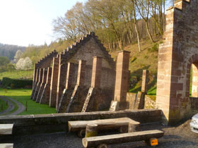 Nach knapp 10 km landen wir am Schwarzbach. Der Fluss führt uns bis an den Ortsrand von Jaegerthal und war Auslöser einer starken Industrialisierung. 1684 erwarb Johann Dietrich den von Adam Jäger gegründeten Eisenhammer in Jaegerthal und startete damit den grandiosen Aufstieg der De Dietrich Industriellen-Dynastie. 1719 wurde er dafür zum Freiherrn des Heiligen Römischen Reichs geadelt. Wir laufen direkt auf die Ruinen seiner ersten Eisenschmiede zu, die noch an die industrielle Entwicklung erinnert.
