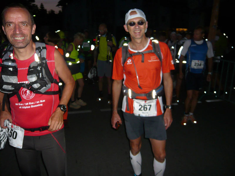 Bereits ab 4:30 Uhr stehen die Helfer am Startplatz vor dem Allgäu Outlet bereit, um noch eventuelle Nachmelder oder Spätanreiser wie mich abzufertigen. Das geht alles in ein paar Minuten problemlos auch mit spärlicher Beleuchtung über die Bühne. Der eigene PKW kann und sollte am Startplatz nicht stehen bleiben, hier gibt es nur wenige Parkplätze und es macht auch keinen Sinn. Die Zielankunft aller Läufe ist im einen Kilometer entfernten Freizeitbad Wonnemar am Stadtrand, hier gibt es auch reichliche Parkplätze und Toilettenhäuschen. Die gibt es natürlich auch am Startplatz, für alles ist gesorgt. Wer das so wie ich in Betracht zieht, dem kann ich noch empfehlen für eigene Beleuchtung zu sorgen, die haben nämlich Dixies nicht. Schaden kann es nicht wenn man die Örtlichkeiten und Wege kennt, dann gibt’s auch zur frühen Zeit keinen Stress.