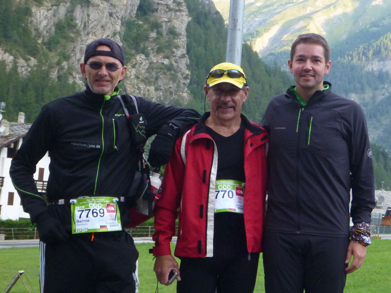 Startort für den CCC (Courmayeur-Champex-Chamonix) ist Courmayeur, auf der gegenüberliegenden Seite des Mont-Blanc-Massivs in Italien. Durch den seit 1965 eröffneten 11,6 km langen Mont-Blanc-Tunnel ist die Anfahrt relativ schnell zu bewerkstelligen. Die Tunnelröhre liegt genau unterhalb des Berges Aiguille du Midi, auf dem wir noch am Mittwoch in über 3800 m Höhe zur Besichtigungstour waren.