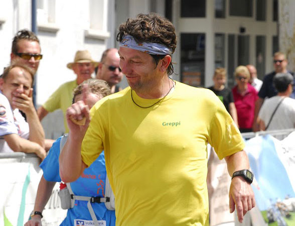 Kurz vor dem Ziel wurde ich auch schon angekündigt. Andreas Greppmeir vom Team TOMJ, der letzte Marathonläufer ist im Ziel!! Hä? Letzter?! Da kam es mir und ich wedelte sofort mahnend mit dem Finger. Nur weil ich die Besenläuferin im Gepäck habe, bin ich doch noch lange nicht Letzter. Der Sprecher stellte schnell alles richtig und ich konnte zufrieden ins Ziel einlaufen.