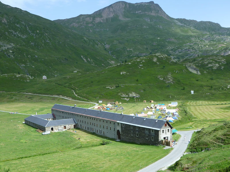 Zu seinen Füßen, unterhalb am Hang liegt das Alte Hospiz, das führt auf Napoleon zurück. Auf seinen Befehl sollte es gleichzeitig mit der Militärstraße entstehen und als Kaserne dienen. Der Grundstein des länglichen Gebäudes wurde 1813 gelegt; der Bau dauerte aber bis 1831. In der Zwischenzeit wurde Napoleon gestürzt, die Franzosen verschwanden aus dem Wallis und das Bauwerk wurde eingestellt. Bis dahin war nur das erste Stockwerk fertig geworden. |