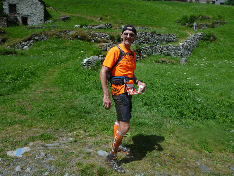 Meine fotografische Arbeit kann ich auf den nachfolgenden 12 Kilometern so gut wie einstellen, ich möchte nicht unbedingt alles doppelt aufnehmen, wir laufen wieder auf denselben Wegen wie gestern, nur heute in entgegengesetzter Richtung. Über das Alte Hospiz, Spittel und Simplon Dorf geht es bergab zum Weiler Gabi. Die ersten Meter verlaufen noch etwas zähflüssig nach dem langen Aufstieg, aber dann komme ich immer mehr ins Rollen und kann viele Mitstreiter hinter mir lassen. Das Gefälle und die Wegbe-schaffenheit sind genau nach meinem Geschmack, nicht zu steil und sehr gut gemischt.