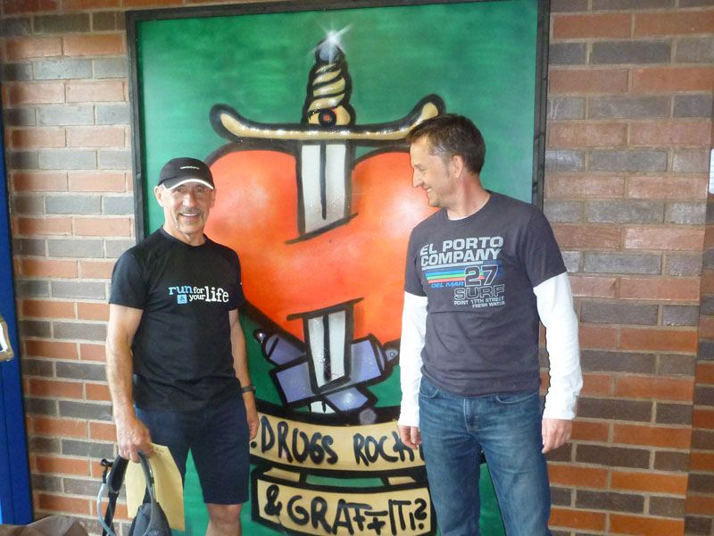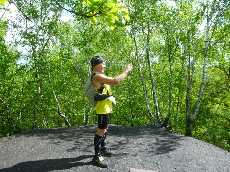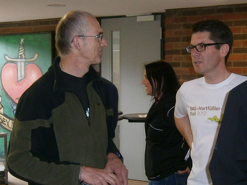 Was die wenigsten Organisatoren einer Veranstaltung auf die Reihe bekommen, lässt sich Hendrik heute nicht nehmen: Nachdem er sie gestern ausgeschildert hat, läuft er heute auf der Ultrastrecke das Rennen auch selber mit. Da hat er sein Team offensichtlich gut im Griff.