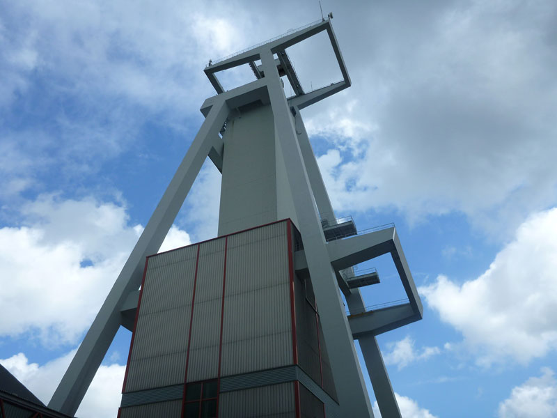 Im Januar 1990 begannen die Arbeiten an dem futuristischen, alle bislang in Deutschland bekannten Dimensionen sprengenden Fördergerüst. Die Investitionen zum Bau betrugen etwa 200 Millionen Euro. Im November 1997 wurde der Plan aufgegeben ihn zu einer der leistungsfähigsten Förderanlagen im europäischen Bergbau zu machen. Das Bergwerk mit 220 Mio. Tonnen abbauwürdiger Vorräte und 137 Kilometern Grubenräumen erwies sich als doch nicht zeitgemäß: Im Vergleich zu anderen Energieträgern war die Kohle aus Deutschland nicht mehr wettbewerbsfähig. Heute ist der Schacht mit einem 70 Meter dicken Betonpfropfen verschlossen.