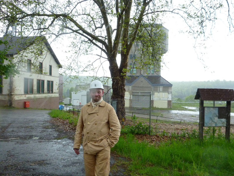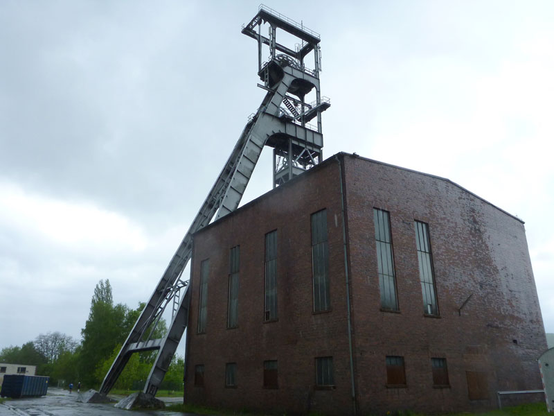 Großartige Übersichten Vorbei an verfallenen Bunkern erreichen wir Grube Camphausen. Nach einer Straßenüberquerung erwartet uns ein stilecht gekleideter Bergmann vor dem 100jährigen und damit ältesten Förderturm der Welt aus Eisenbeton, dem sogenannten Hammerkopfturm. Aus Platzmangel konnte man die Antriebsmaschinen nicht auf der Erde unterbringen, sondern musste sie direkt oberhalb des Schachtes in den Förderturm integrieren. Über lange Jahre war die Grubenanlage eine der größten im Saarland. 1990 wurde sie eingestellt.