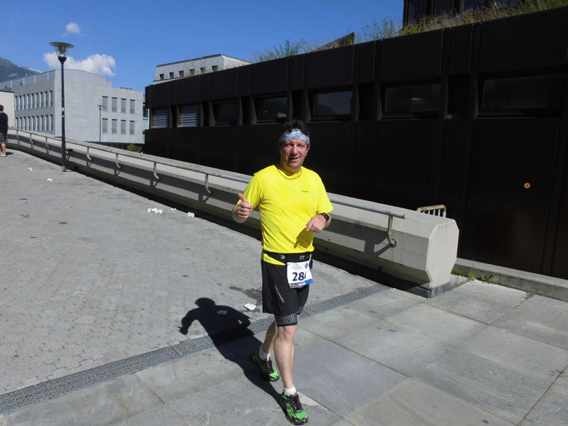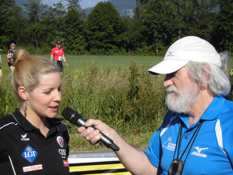 Am Start gab sich auch Adrian Hasler die Ehre. Er ist der amtierende Regierungschef von Liechtenstein. Völlig entspannt und ohne Security ließ er sich vom Moderator interviewen. Etwas bekannter kam mir da schon der Name der jungen Dame vor, die den Startschuss geben sollte. Tina Weirather, eine Weltklasse Skirennfahrerin und zudem Tochter von Skifahrerlegende Harti Weirather, kam auch äußerst sympathisch und volksnah rüber. Ein weiterer Skirennfahrer gab sich die Ehre. Marco Büchel stand ebenfalls am Start und wollte sich nach eigenen Angaben über den Halbmarathon Plus (25 km) versuchen. 3:24 Stunden war er letztendlich unterwegs. Immerhin waren hier auch gut tausend Höhenmeter zu überwinden.