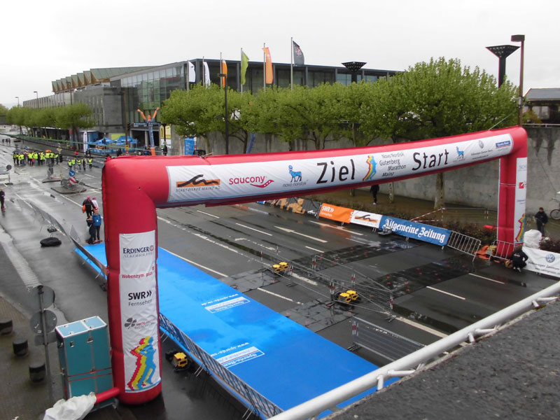 Am nächsten Morgen erwachten Wolfgang und ich rechtzeitig. Der erste Blick aus dem Hotelfenster war ernüchternd. Der Himmel war grau in grau. Nichts war irgendwie nach einer Auflockerung aussah. Die Temperaturen würde ich mal vorsichtig als dürftig bezeichnen. Positiv war, dass der Regen schon fast als Nieseln bezeichnet werden konnte. Ein kurzes Frühstück genehmigten wir uns noch, danach machten wir uns auf den Weg in Richtung Rheingoldhalle bzw. Rathaus. Dort sollte in knapp über einer Stunde der Startschuss fallen. Nach rund zwanzig Minuten Fußmarsch waren wir angekommen.