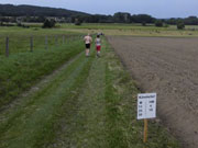 Nach ein paar Metern auf einem Forstweg nähern wir uns der Ortschaft Nemden. Dort treffen wir auch auf die ersten Zuschauer. Ich schätze, es dürften etwa zehn bis fünfzehn gewesen sein. Doch wir Läufer danken artig und so schlängeln wir und kreuz und quer durch Nemden, bis wir dieses auf einem weiteren Feldweg wieder verlassen.