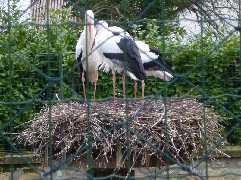 Mit einer Flügelspannweite von über zwei Metern, gehören sie zu den prachtvollsten Vögeln Mitteleuropas. Dabei waren sie Ende der 70er Jahre im gesamten Elsass fast komplett ausgestorben. Gab es um 1900 noch tausende, waren es 1982 gerade mal 2 Paare, die noch gezählt wurden, was die Leute in eine gewisse Panik versetzte. 1983 starteten Naturschützer ein Wiederansiedlungsprogramm. Dank Hege und Pflege in den zahlreichen Storchenparks zwischen Mühlhausen und Straßburg gibt es heute wieder über 400 Paare. Nur einige hundert Meter vom Hexenturm entfernt, gibt es auch in Rouffach eine Aufzuchtstation. Etwa 20 Stück, sowohl innerhalb als auch außerhalb des Geheges, können wir uns aus nächster Nähe bei einem kleinen Spaziergang bewundern.