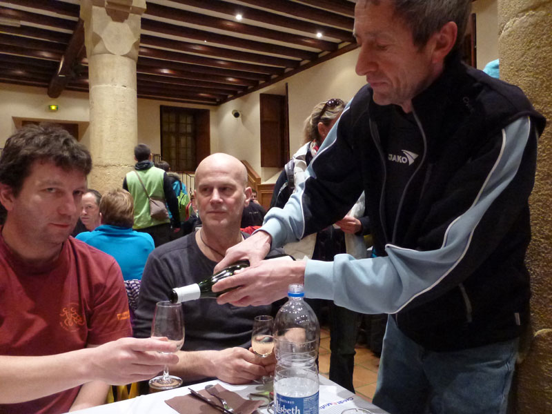 Daneben im alten Rathaus aus dem 15. Jahrhundert bekommen wir unsere Startunterlagen ausgehändigt. Vergessen sollte man keinesfalls ein gültiges ärztliches Zeugnis, denn ohne geht hier gar nichts. Nicht älter als ein Jahr darf es sein und muss spätestens beim Abholen der Startnummer vorgelegt werden. Im Eingangsbereich ist die Ausgabestelle für den Crèmant d’Alsace, den jeder Teilnehmer nach Vorzeigen der Startnummer überreicht bekommt. Das Gegenstück, das Luxusgetränk aus der Champagne, hat durch ihn große Konkurrenz bekommen, was die Winzer dort weniger erfreut. Rund 13 Prozent – das sind über 20 Millionen Flaschen – der elsässischen Weine werden durch eine zweite Gärung zu Crémant verarbeitet.