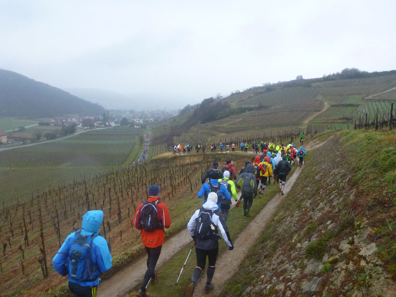 2.000 Trailer werden heute die drei angebotenen Strecken in Angriff nehmen. Zur Auswahl stehen der Trail du Petit Ballon, der Circuit des Grands Crus mit 24,7 km und der Mini Trail de l’Ane mit 8,3 km. Beim Ultratrail sind 838 Personen vorangemeldet, davon 170 aus Deutschland. Das lässt sich doch sehen und ist eine erneute Teilnehmersteigerung zum Vorjahr.