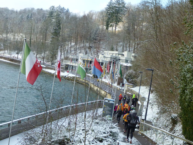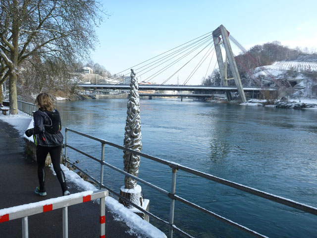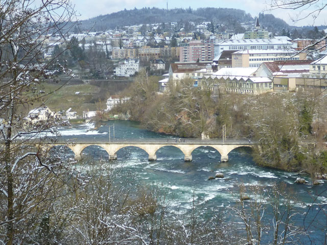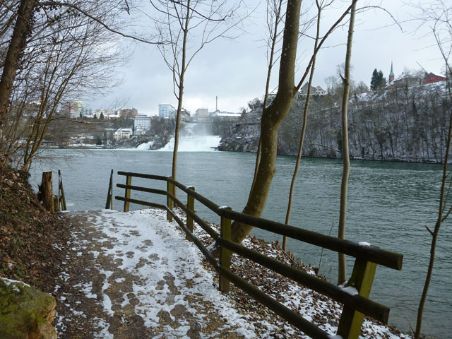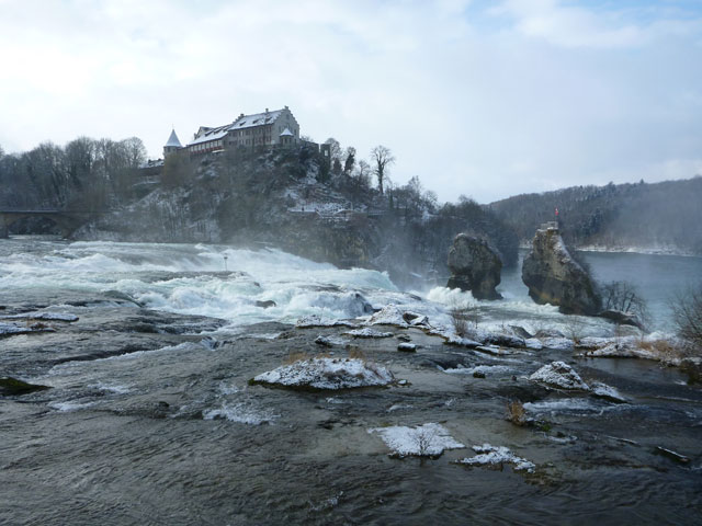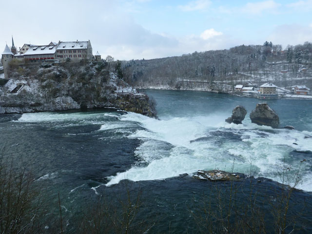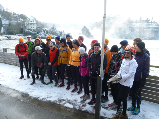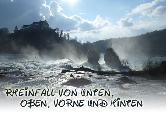 Unglaublich kurzweilig gestaltete sich die erste Umrundung der super abwechslungsreichen Strecke und so freue ich mich, heute das Ganze noch dreimal genießen zu können. Mit dem Wetter haben wir zudem außerordentlich viel Glück, angenehme Winter-Temperaturen mit viel Sonne versüßen uns den Tag. In jeder weiteren Runde präsentiert sich der Rheinfall in einem wechselnden Spiel von Sonne und Wolken.