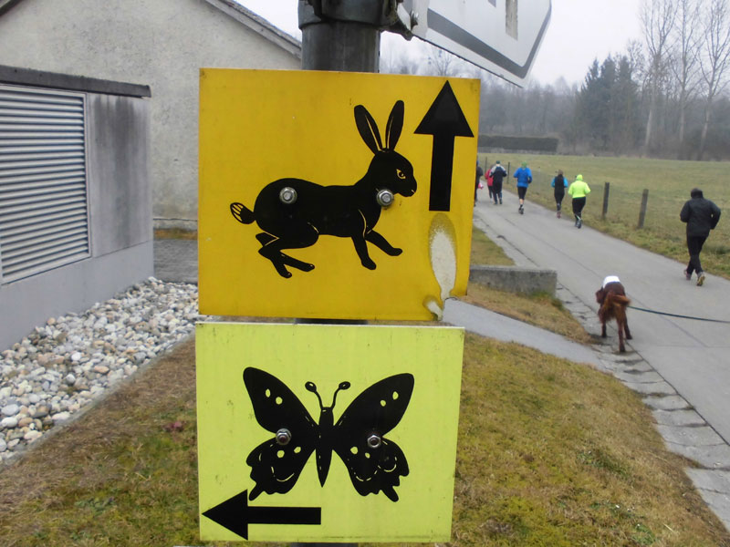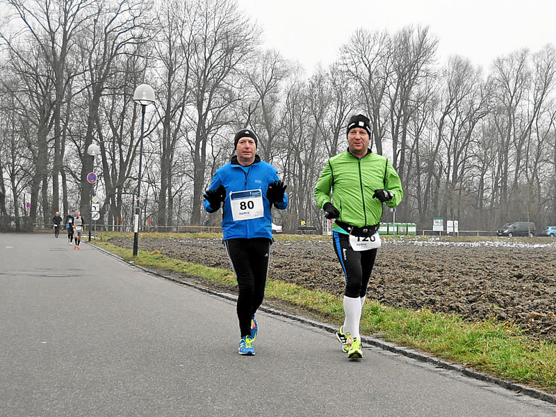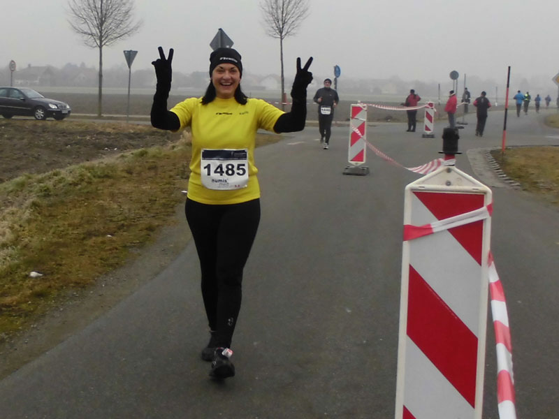 Durch die Gespräche war die Zeit gut vergangen und ich blieb auch im Schnitt. Die letzten beiden Kilometer wurden dann auch wieder abwechslungsreich, überholten mich doch tatsächlich bereits die ersten Läufer, die schon kurz vor dem Ziel waren. Auf Runde eins und zwei gibt es nämlich auch gemeinsame Streckenabschnitte, sogar eine Kreuzung war mit dabei, was jedoch alles reibungslos funktionierte. Während ich das Tempo der schnellen Läufer bewunderte – sie liefen in einer Zielzeit von rund 3:20 h – musste ich mich etwas zügeln, um nicht schneller zu werden. Ich lief nun neben diesen Sportskanonen ins Ziel ein, mit dem feinen Unterschied, dass ich noch zehn Kilometer vor mir hatte. Das Tempo war in Ordnung, also weiter.
