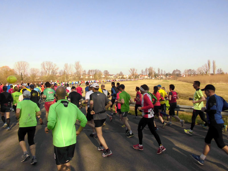 45 Minuten vor dem Start machten wir uns auf die Suche nach bekannten Gesichtern. Kathi Schramm, Thomas „Teddy“ Weiß und auch Magic waren in die Starterliste eingeschrieben. Magic wurde schnell gefunden. Er war in Begleitung seiner Teletubbies, die diesmal ganz ohne Maskerade auf die Strecke gingen. Magic klang, was die Zukunft angeht wieder ganz zuversichtlich. Bei der weiteren Suche mussten wir feststellen, dass das Starterfeld ganz schön groß war. Letztendlich sollen es fast 2.000 Läufer – verteilt auf Marathon und Halbmarathon – gewesen sein. Kathi blieb bis zum Start unauffindbar, ihr begegnete ich leider erst auf der Strecke.