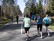Der Bienwald ist ein etwa 120 Quadratkilometer großes bewaldetes Landschafts-schutzgebiet in der Rheinebene im Südosten von Rheinland-Pfalz und von uns aus in gut 2 ½ Stunden zu erreichen. Deshalb entschlossen wir uns morgens anzufahren und direkt nach dem Lauf wieder nach Hause. Um vier Uhr morgens läutete mein Wecker gnadenlos und ich quälte mich aus dem Bett, pünktlich um fünf Uhr wollte ich ja schließlich Charly abholen. Am Vortag hatte ich bereits alles parat gelegt, so kam ich auch im Halbschlaf klar und stand pünktlich bei Charly vor der Tür. Auf der noch verlassenen Autobahn fuhren wir in Richtung Kandel und mein Navi versprach mir eine Ankunft nach 2:22 Stunden. Da kaum Verkehr herrschte, konnte ich sogar noch ein paar Minuten gut machen. Wir waren so ziemlich die ersten, die vor der Bienwaldhalle einparkten. Ohne Anzustehen bekamen wir unsere Startnummern und konnten sogar die Laufshirts, die im Startgeld enthalten waren anprobieren. Etwas seltsam war es dann allerdings, als wir unsere Finisher-Medaille käuflich erwerben mussten und diese schon vor dem Start bekamen. Berühren war tabu, ab damit in die Info-Tüte, eine Finisher-Medaille gibt‘s erst nach dem Finish.