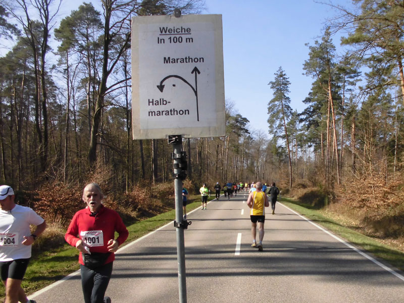 Eigentlich wollte ich meinen nächsten Marathon ja erst Ende März laufen, aber nachdem ich in meinem Beruf neue Wege einschlage, habe ich plötzlich am Wochenende frei. Da dies erst mal auf sechs Wochen befristet ist, musste ich die Zeit nutzen und meldete mich zum Bienwald-Marathon in Kandel an. Charly ließ sich nicht lange betteln und war auch mit dabei.