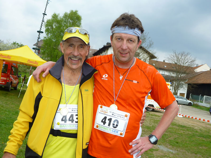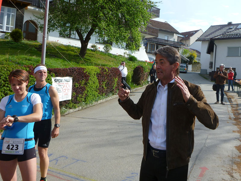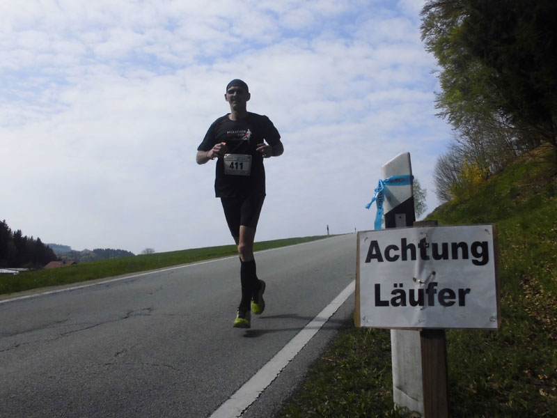 Um 10 Uhr wird der Marathon gestartet, der Halbmarathon folgt eine Stunde später. Landrat und Schirmherr Ludwig Lankl gibt mit Pistole den Startschuss. Die Zeitmessung erfolgt mit einem elektronischen System beim Zieldurchlauf, so benötigen wir keinen Chip.