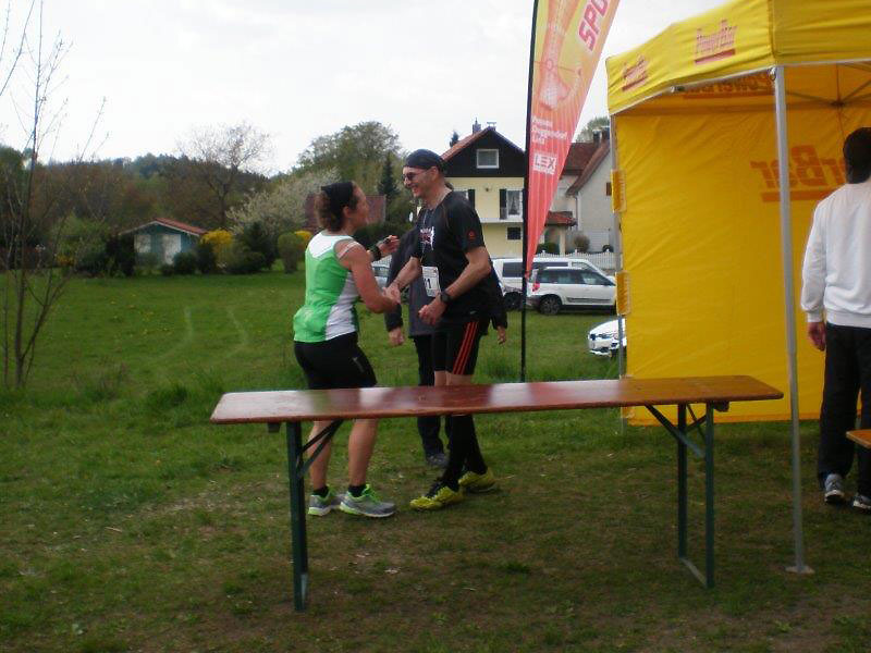 Hinter der Zeitmessung ist der Getränkestand, ich entscheide mich diesmal wieder für bleifrei, muss ja noch Auto fahren. Neben dem Festzelt kann man sich noch Eintopf abholen. Für Läufer alles inklusive. Bald darauf ist die Siegerehrung. Die drei Erstplatzierten und alle Altersklassensieger bekommen Pokale sowie das schnellste Team. Da bleiben nicht mehr viele übrig die heute leer ausgegangen sind. Man muss wirklich begeistert sein, was Ludwig Schürger hier auf die Beine gestellt hat. Klein aber fein. Die Veranstaltung verdient ohne Zweifel ein größeres Teilnehmerfeld, es macht nämlich wirklich Spaß im Woid. |
