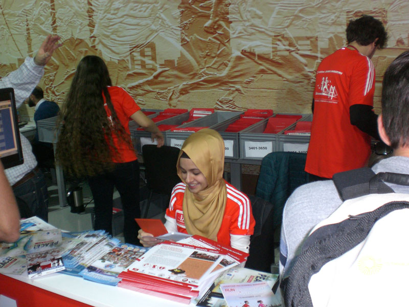 Am Samstag werde ich mit dem Bus zur Laufmesse gebracht. Die liegt ziemlich weit draußen in einem Sportzentrum. Bei der Startnummernausgabe ist Chaos angesagt. Nichts von geordnetem Anstehen. Keine Nummernaufteilung. Nur Gedränge von allen Seiten. Das ist Istanbul. Dann Startbeutel holen und gleiches Bild wie vorher. Ist halt so und ich kämpfe wieder in der Masse. Zusätzlich wollte ich evtl. noch Laufschuhe oder Shirts einkaufen, stellte aber fest, dass es keine Schnäppchen zu machen gibt.