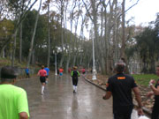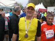 Was ist los? Gibt es keine Mädels, die mir die Medaille umhängen wollen? Nein! Man bekommt eine Plastiktüte. Darin ist die Medaille versteckt, eine Flasche Wasser, eine Banane und ein Baumwollshirt, Zuhause bestens geeignet für Malerarbeiten. Okay. Suche anschließend vergebens nach Verpflegung die es nicht gibt. Wie auch auf der gesamten Strecke kein Tee, kein Iso, kein Cola zur Verfügung stand. Nur Wasser. Auch gut. Und so mache ich mich auf den Weg zum nahen Hotel, lass mir dort die Badewanne ein und regeneriere den Rest des Tages.