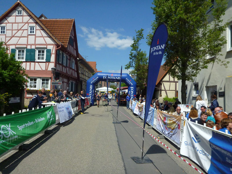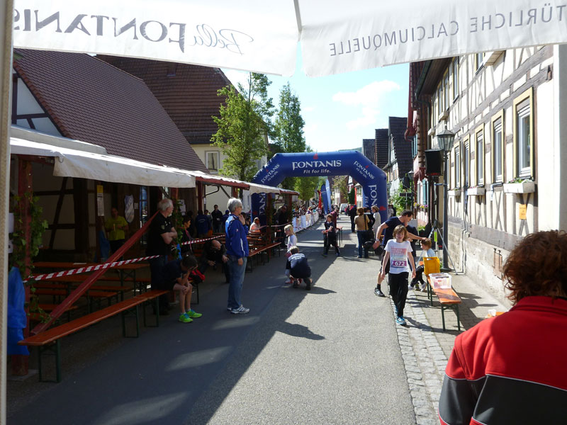 Etwa 900 Einwohner kann Ochsenbach aufweisen, so ist der gesamte Ort an der Württemberger Weinstraße heute mehr oder weniger in Läuferhand: Entweder als Parkplatz oder Veranstaltungslokation. Von der Sonnenberghalle, ziemlich am Ortsrand, wo die Abholung der Startunterlagen und Duschmöglichkeit untergebracht ist, bis in den zentralen Start- und Zielbereich in der Dorfstraße in der Ortsmitte, sind keine allzu großen Fußwege zurückzulegen.