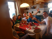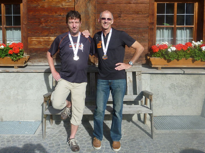 Bernie war erwartungsgemäß eine Stunde schneller als ich im Ziel und erwartete mich schon im Hotelzimmer. Nach einer warmen Dusche und einem kurzen erholsamen Nickerchen, besuchten wir noch die Marathonparty in der „Dorfstube“, die direkt auf der anderen Straßenseite lag. O.K., es war dann mehr eine Pasta-Party mit drei Gängen, aber man kam doch noch mit dem einen oder anderen Läufer ins Gespräch. Wir setzten uns zu einem jungen Finnen an den Tisch und fachsimpelten auf Englisch etwas über diverse Marathons, sowie natürlich auch über den Montafon-Arlberg-Marathon. Tero Ruokalainen, so hieß der junge Mann, erzählte ganz bescheiden, dass dies erst sein zehnter Marathon gewesen sei und er in sich selbst zum 28. Geburtstag geschenkt hätte. Kein Wort ließ er über seine erbrachte Leistung verlauten und schien eher von Bernie und meiner Erklärung beeindruckt, dass wir während des Laufens auch noch fotografieren. In der Ergebnisliste tauchte Tero schließlich mit unglaublichen 3:51 Stunden und einem neunten Platz in der Gesamtwertung auf. Einer Zeit, die ich nicht mal flach laufen kann und das durch einen Finnen, der ja auch nicht gerade in alpinen Verhältnissen aufgewachsen ist.
