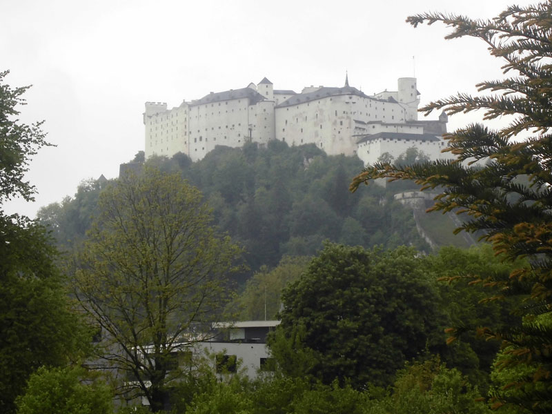 Bald sind wir an der Hellbrunner Allee angelangt. Diese überwiegend von Kastanienbäumen gesäumt Allee wurde im Jahr 1615 im Auftrag des Fürsterzbischofs Markus Sittikus von Hohenems angelegt. Sie ist heute die älteste herrschaftliche Allee Mitteleuropas und führt uns 2,5 Kilometer schnurgerade an den südlichen Stadtrand von Salzburg. Gesäumt ist der Weg auch immer wieder von schönen herrschaftlichen Ansitzen. Vorbei an den Schlössern Freisaal, Frohnburg und Emsburg nähern wir uns dem eigentlichen Höhepunkt dieses Streckenabschnitts. Dem Schloss Hellbrunn. Da dürfen wir nämlich nicht nur dran vorbei-, sondern auch durchlaufen.