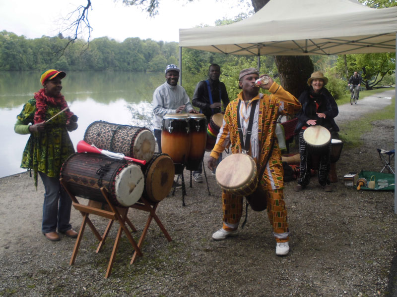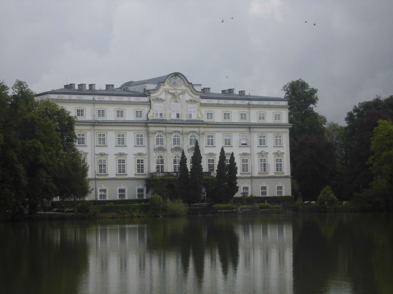 Die nächsten Kilometer führen uns durch den Eichetwald, wo uns Schilder auffordern die Ruhe und Stille genießen. Mit den zahlreichen Läufern, die mich hier noch umgeben, will das nicht recht gelingen und wir nähern uns dem Kilometer 10 und der nächsten Verpflegungsstation. Kurz vor Schloss Leopoldskron überlaufen wir die erste Kontrollmatte, bei der die Halbmarathonis schon die Hälfte ihres Laufs hinter sich gebracht haben. Ein kurzer Blick auf die Uhr. Alles im Soll. Ich bin gut unterwegs. Wir umrunden nun den Leopoldskroner Weiher und passieren auch das gleichnamige Schloss. Den schönen Blick darauf, haben wir aber erst auf der südlichen Seite des Weihers. Das im 18. Jahrhundert im Auftrag von Fürsterzbischof Leopold Anton von Firmian erbaute Schloss ist heute ein internationaler Treffpunkt für Führungskräfte aus Politik und Wirtschaft. Der Weiher wurde früher für romantische Bootsausflüge genutzt und war auch für die gesamte Salzburger Bevölkerung als Badeanstalt vorgesehen. Eine afrikanische Musikgruppe hatte sich heute hier eingefunden und motivierte uns mit Trommelrhythmen zum Weiterlaufen.
