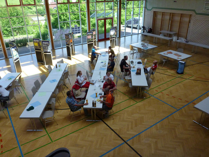 In der Sporthalle stehen ausreichend und warme Duschen zur Verfügung. Die Küche bietet diverse Speisen an und eine riesiges Kuchenbüffet. Jan schwärmt von Erdbeerkuchen und Schwarzwälder-Kirsch. Ich benötige heute nicht mehr viel, auf der Strecke gab es wirklich reichlich zu futtern. Wer auf der Suche nach einer möglichst schnellen Strecke, viel Trubel, Hektik und dichtbesetzte Teilnehmerfelder ist, hat beim Schefflenzer Ultra nichts zu suchen, der Rest liegt goldrichtig. Spektakuläre Dinge gibt es hier nicht, aber es wartet eine perfekt und liebevoll ins Detail organisierte Veranstaltung mit außergewöhnlich großzügigen Zeitlimits in einer herrlichen Landschaft. Somit auch geeignet für jene, die sonst immer über zu knappe Cut-Offs jammern. |
