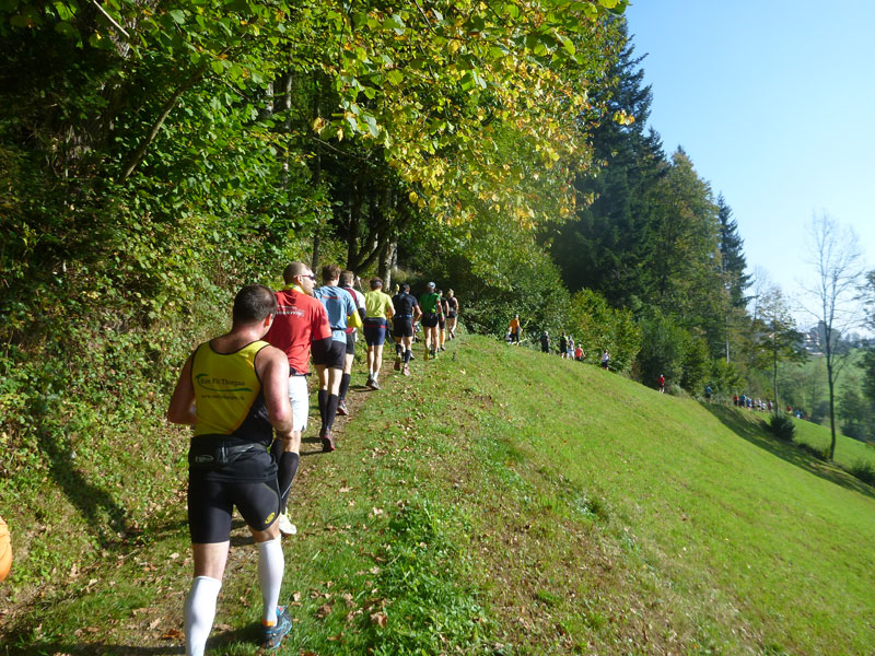 Den Start zum Pölven Trail am Sonntag erlebe ich leider nur als Zuschauer, meine Wadenverhärtung lässt keinen Start zu. |