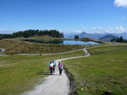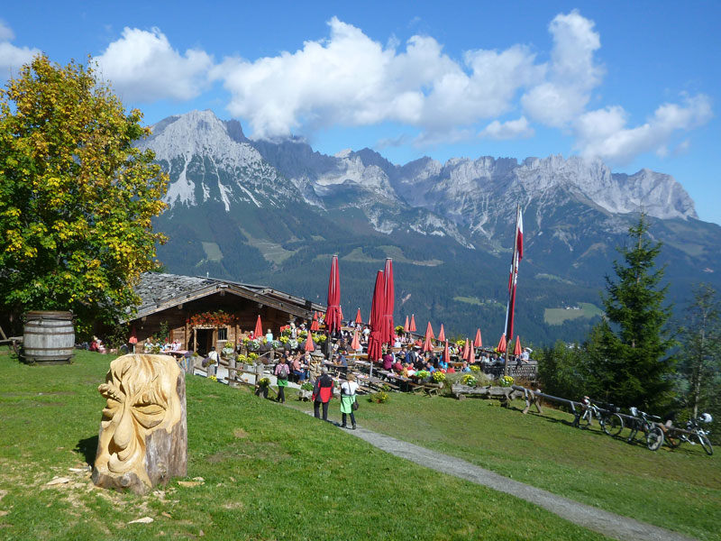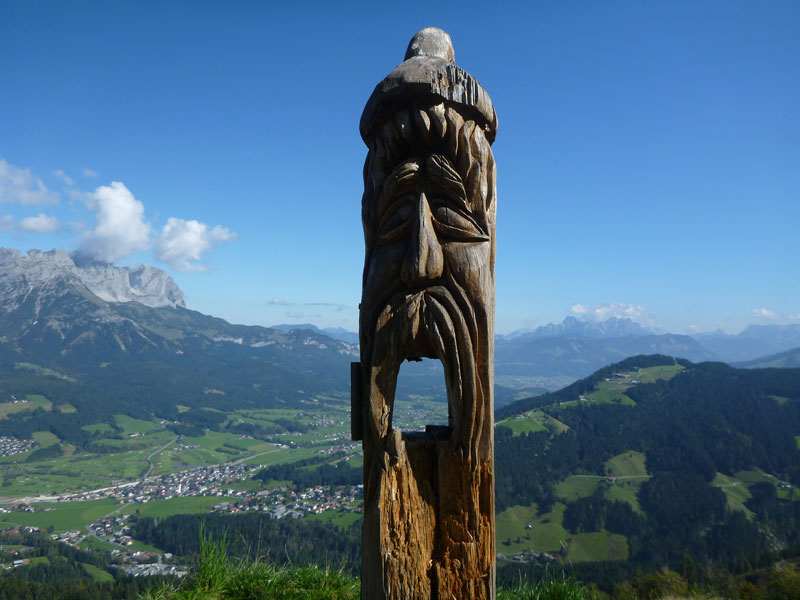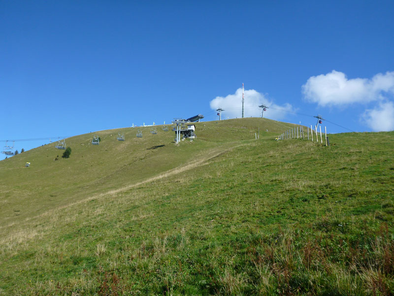 Rechts geht’s im Winter rauf mit der Zinnsbergbahn zu einer herrlichen Abfahrt hinunter zur Aualmbahn. Ich kann mich noch gut erinnern, einer meiner Lieblingspisten hier im Gebiet, neben der linker Hand liegenden schwarzen Abfahrt von der Hohen Salve herunter, deren Gipfel liegt jetzt genau über mir. Aber der halbe Berg ist noch zu umrunden um heute zu Fuß auf den Gipfel laufen zu dürfen. Hätte mir das früher mal jemand vorgeschlagen, dem hätte ich den Vogel gezeigt.
