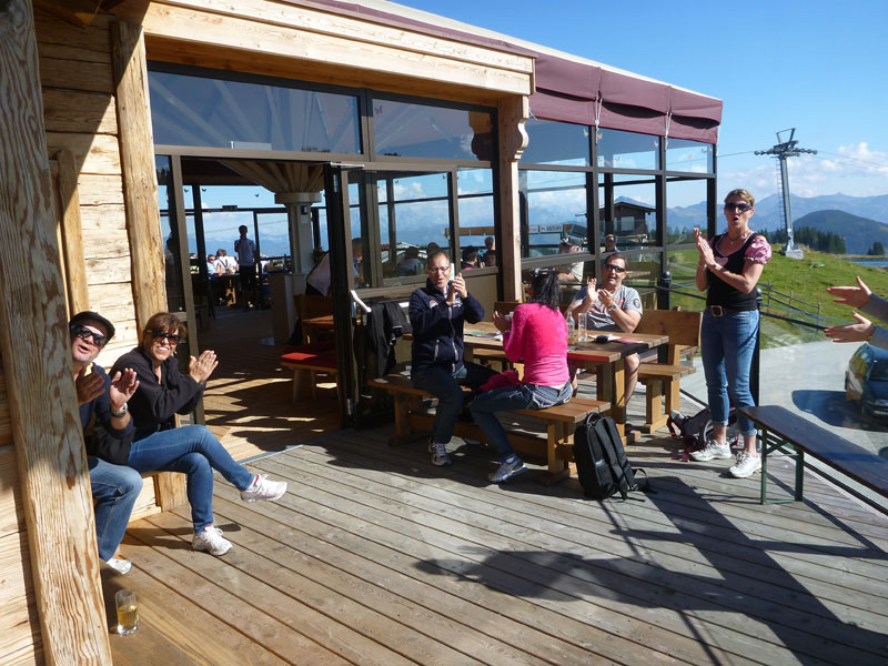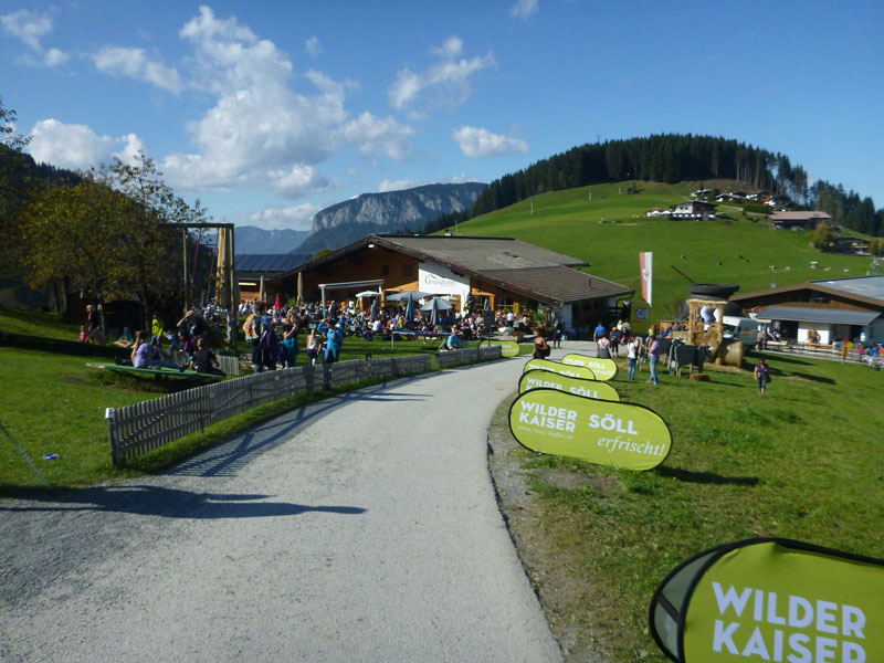 Einige verlassen die Gondeln, haben kein Vertrauen mehr und laufen lieber hinunter. Aber es geht weiter, jetzt wieder hinunter auf der anderen Seilseite, mit tatkräftiger Hilfe des Abbauteams des Tour-Veranstalters. Sie müssen jede einzelne Gondel um die 180 Grad-Wende in der Bergstation schieben. In einem Rutsch geht es jetzt doch durch bis zur Hexenwasser-Station. Zur Siegerehrung um 18 Uhr bin ich wieder in Söll.