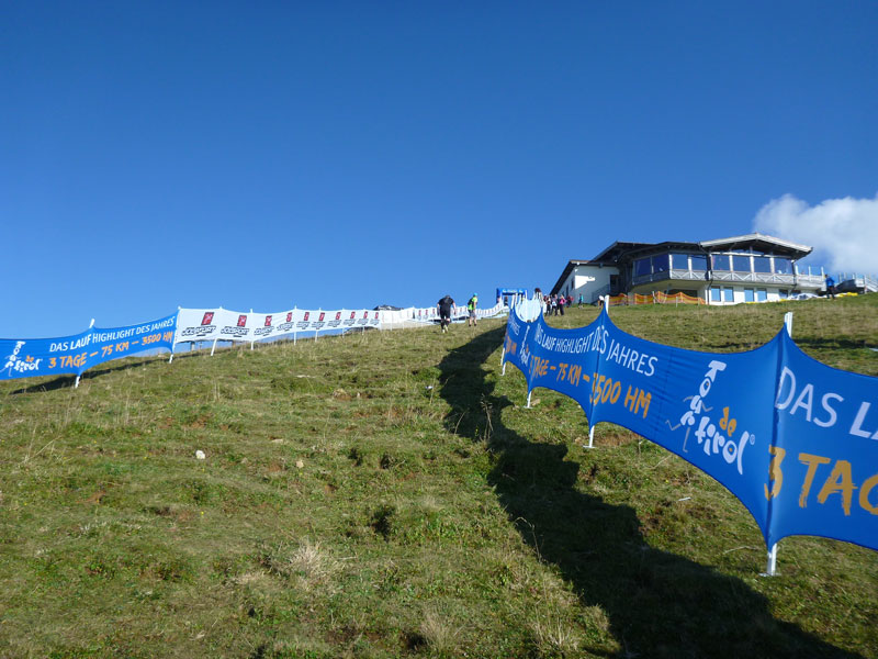 Lange habe ich nicht Zeit, mich auf der Aussichtsterasse zu erholen, schon bald nach der letzten Zielankunft werden die Aufbauten vom Veranstalter wieder abgebaut. Als dann auch die Lautsprecherdurchsage ertönt, dass bald die letzte Gondel nach unten fährt, mache ich mich auf den Weg. Wir haben natürlich mit Laufnummer freie Fahrt.