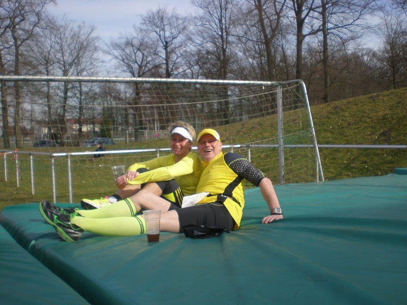 Ich genieße die letzte Runde und vernehme beim Zieleinlauf auch schon den Jubel meiner Freunde. Kati, Charly und Jan haben es sich schon auf der Hochsprungmatte direkt hinter dem Ziel bequem gemacht. Oh ja, darauf freue ich mich jetzt auch, aber erst warte ich noch kurz auf Bernie, der kurz hinter mir in Ziel kommt und wir lassen uns gemeinsam ins Gras fallen. Wir sind beide deutlich unter 4:30 geblieben und damit mehr als zufrieden.