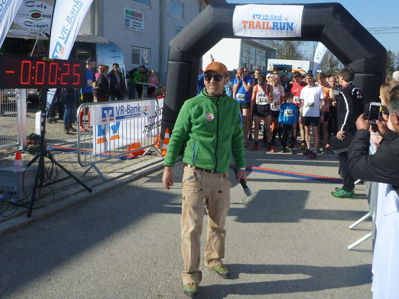 Bis eine halbe Stunde vor den Kinder-Starts kann man noch Nachmelden. Wie mir scheint, machen heute außerordentlich viele davon Gebrauch. Vom Ammerfit-Studio führt ein Weg zum etwa 150 Meter entfernten Start- und Zielbereich. Moderiert werden alle Läufe von Peter Maisenbacher, ihn kennt man ja mittlerweile nicht mehr nur vom Fernsehen, sondern auch von vielen anderen Laufveranstaltungen als Moderator.