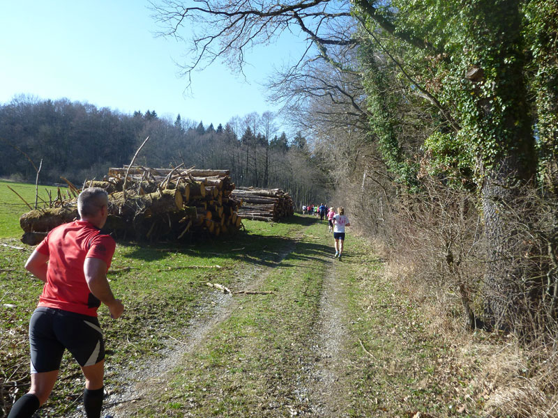 In zwei Minuten Abständen werden die Läufe kurz hintereinander gestartet, beginnend mit den Ein-Runden-Läufern, am Ende die Langstreckler. Im Sandwich der beiden Rennen geht es für mich pünktlich los. Die Zeiten werden genau genommen, per in die Startnummer integriertem Chip. Fast 250 Meldungen kann der Veranstalter für die drei Läufe vermelden. Das Läuferfeld ist gut gemischt, es sind alle Leistungsklassen vertreten, darunter mit Matthias Dippacher auch einer unserer besten deutschen Trailrunner, der den Lauf anscheinend als gutes Training ansieht. |