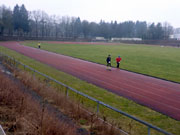 Wir umrunden kurz noch den Rest des Stadions und laufen wieder raus in die Wohnsiedlung. Das war's. Runde Eins ist beendet. |