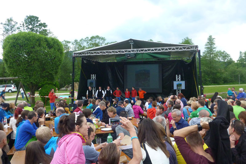 Um 19 Uhr findet auf dem Marktplatz die Siegerehrung statt. Die anliegenden Gasthäuser bewirten die Veranstaltung, nicht nur mit Getränken, auch mit Speisen. Anschließend findet auch noch bis Mitternacht ein Rockkonzert statt. Besser kann man ein Event kaum abwickeln. Mein Kompliment an die Veranstalter: „Des habts guad gmacht.“ Der weiße Fleck auf der Trail-Landkarte existiert somit nicht mehr, der Lamer Winkel ist ab sofort Trail-Hochburg. Für’s nächste Jahr ist eine eventuelle Erhöhung des Starterfeldes angedacht, das ist in meinen Augen dringend erforderlich.