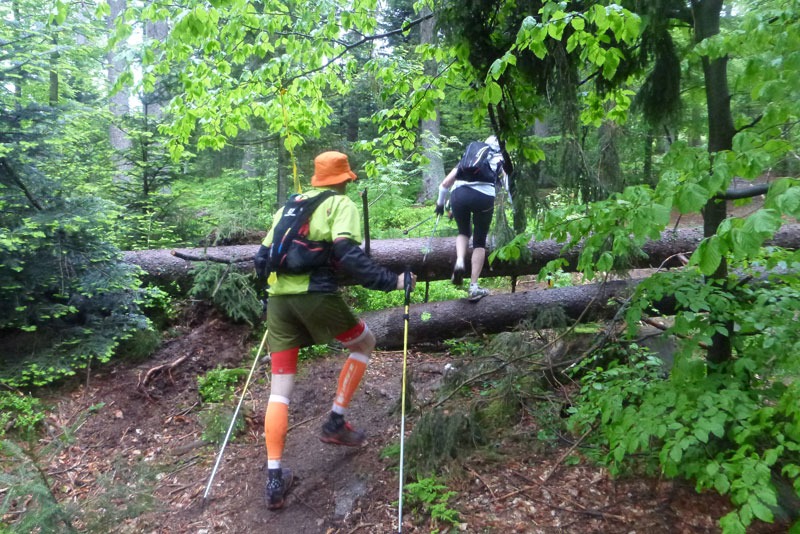 Einige hundert Meter laufen wir direkt an den Grenzpfählen entlang und so kann man auch mal einige Meter auf tschechischem Gebiet absolvieren. Was wir heute leider verpassen ist eine grandios Aussicht über unsere gesamte Laufstrecke, der Nebel macht uns einen Strich durch die Rechnung.
