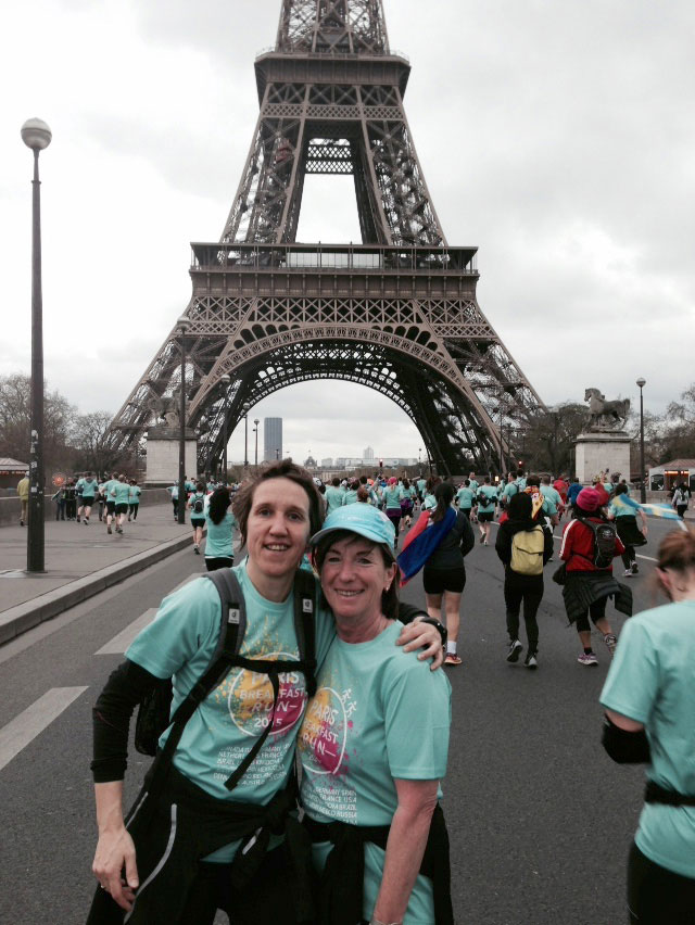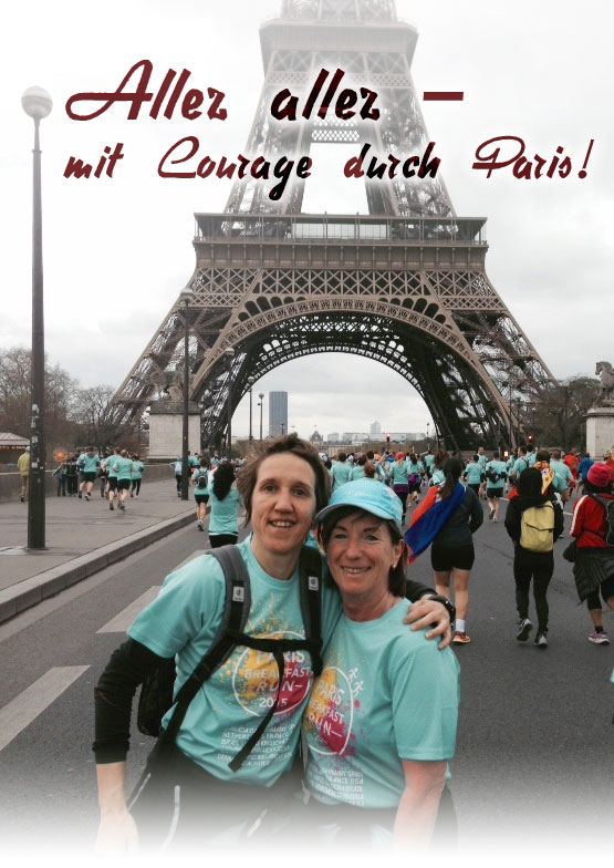 Dann ging es am Samstag schon mal beim Triumphbogen zum Startgelände, um 9 Uhr wurde der Frühstückslauf gestartet. 5 km durch Paris mit tausenden von Läufern, alle im gleichen Shirt und hinter dem Musikwagen her über Trocadero zum Eiffelturm. Herrlich! Anschließend gab es ein kleines Frühstück mit Croissant, Pain au Chocolat, Banane, Kaffee und Tee. Alles ohne Gedränge und ohne Stress.