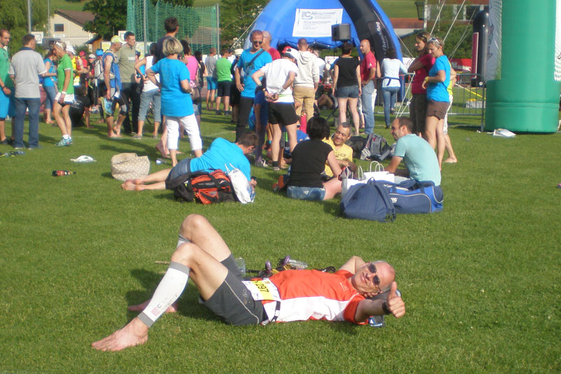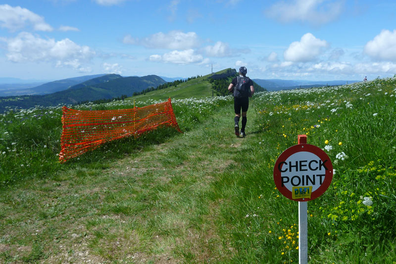 Aber Vorsicht, diese Option steht wirklich nur langsameren Teilnehmern zur Verfügung. Damit sich nicht auch schnellere Läufer unter uns Rennschnecken mischen, hat der Veranstalter Vorsorge getroffen. Erst ab 9:50 Uhr darf man den Kontrollpunkt „Carrière de Môtiers“ bei Km 27 passieren. Wer zu früh da ist, muss ganz einfach warten.