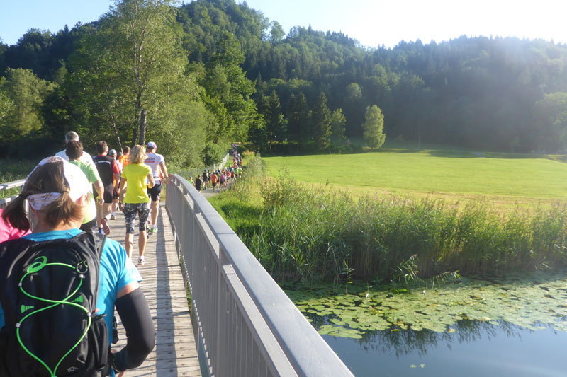 Bei Organisator Gerhard Honold oute ich mich als Trailrunning.de-Autor, was ihn sichtlich freut. Etwas Kummer hat er, weil sein Lauf offenbar bei Trailrunnern nicht ganz ernst genommen wird. Sicher, ein extremer Trailrun ist das nicht. Aber der Naturparklauf um den Großen Alpsee ist ein wirklich toller Lauf mit vielen, abwechslungsreichen Trails in einer wunderschönen Landschaft. Wenn man ihn Großer Alpsee Trail nennen würde, wäre das auch angemessen. |