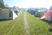 Auf dem Weg bis nach Hochreute durchlaufen wir ein riesiges Zeltlager. Hier wird richtig Stimmung gemacht, denn neben der Verpflegungsstation finden sich hier auch einige Zuschauer ein, die jeden einzelnen Läufer ausgiebig feiern.