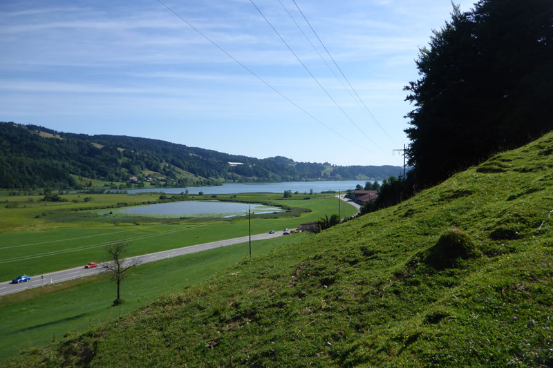 Nun wird es um mich herum etwas ruhig. Macht nichts. Ich genieße die Ruhe und schalte etwas ab. Wir befinden uns auf der Seepromenade auf Höhe des Strandbades wieder und laufen nun auf einem breiten Wanderweg immer am Alpsee entlang bis nach Ratholz.